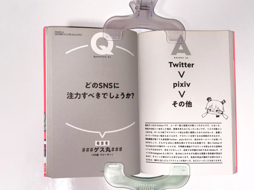 各テーマに対する文章量は少なく、虎硬さんの口調も丁寧で優しいので、とても読みやすいつくりになっています。まだこの手の情報にほとんど触れたことのない人、10代の若い人や、活字を読むのに慣れていない人にはおすすめできると思います。Amazonレビューにもあるように、他業界の人がイラスト業界について大まかに把握するのにも良さそうです。